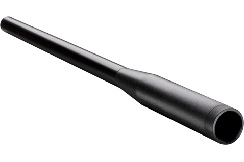 This extension will push on to any snooker cue of any make, however this style of extension is usually used on cues which do not have the facility to accept any form of screw on extension. For example one piece or centre jointed cues which do not have 'Butt End Joints' fitted. This extension is fitted by simply pushing the cue butt into the end of the extension which grips the cue firmly in place. This extension is constructed of aluminium and ABS plastic measures 25 1/4" (64cm) in length, with a diameter of 1 5/8" (4.25cm) at its widest point. When the cue butt is inserted into the extension it extends the length of the cue by 17.5" (44.5cm).