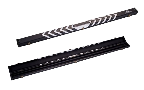 Black and White arrow pattern exterior with black and White interior. This attractive and robust case with leather look covering and attractive embroidery offers superb value for money. The mock sued interior is padded to hold the cue securely in place and features a separate compartment for storing chalk.